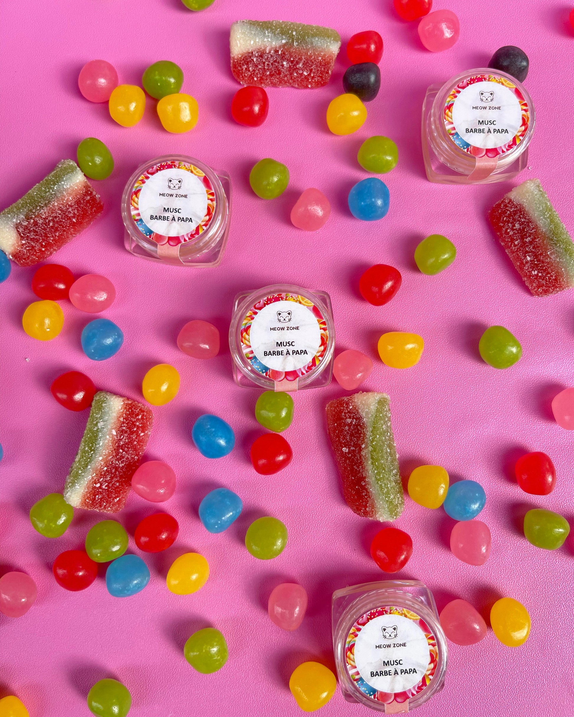 Le musc Barbe à Papa: Fragrance très sucrée, pétillante et gourmande.